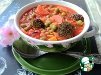 Описание: Очень яркий, насыщенный красками и вкусами суп. Не тяжёлый, но довольно густой, со множеством овощей. А еще это шанс накормить семейство полезным брокколи на добровольной основе.
