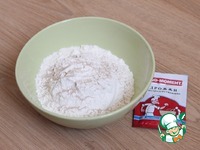 Муку просеиваю, а затем смешиваю с дрожжами. |