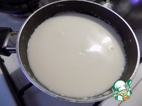 Когда рыба сварится, вынимаем её из бульона. Бульон процеживаем и наливаем его 800 мл в другую кастрюлю. Когда он закипит, добавляем к нему сливки. |