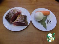 Выкладываем морковь, крупно порезанную брусочками и целую луковицу. Солим по вкусу. Варим до готовности. Выкладываем рыбу, перцы и лавровые листы. Рыба варится быстро. |