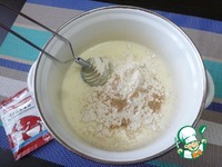 Добавить муку и быстродействующие дрожжи Саф-Момент. Приготовить довольно жидкое тесто. Влить растительное масло и хорошо перемешать. |