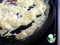 Вылить на сковороду и жарить пока масса не начнет густеть. Не передержите, на это уйдет немного времени. Начинка из заварных яиц должна быть нежной. |
