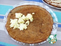 Фаршируем блинчики заварными яйцами, кому ка нравится (конвертом, рулетом или уголком). Указанных продуктов для начинки хватает на 4 блина. |