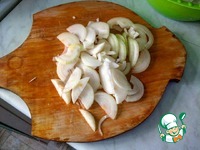 Лук нарезать полукольцами, на сковороду налить растительное масло, засыпать туда лук. |