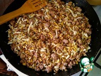 Затем в сковороду с луком выкладываем фарш, солим, перчим и обжариваем до готовности! |