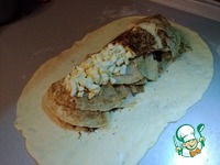 Блины я режу на 3 сегмента-так удобнее раскладывать. |
