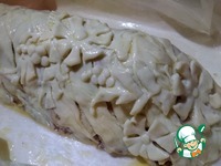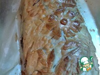 Делаем надрезы на тесте и заплетаем косичку-полоску теста слева накрываем полоской справа, и так до конца. |