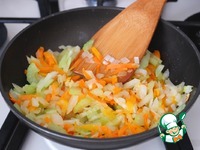 На сковороду добавить 2 ст. ложки растительного масла. Тушить овощи на медленном огне до мягкости. |