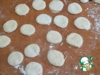 Как тесто наше поднимется, нужно тесто обмять и раскатать пласт. Выдавить кружки небольшого диаметра. |