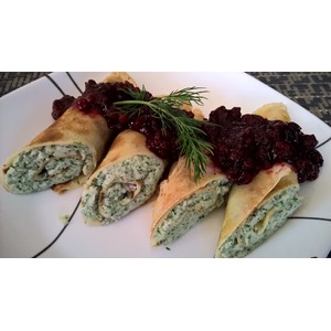 Описание: Этот рецепт отлично подходит для завтрака в выходные дни. Он достаточно легок в приготовлении. Я взял его из передачи "Небанальная Кухня Павлова" от замечательного шеф повара Владимира Павлова. В этом рецепте оригинально сочетается вкус блинчиков, нежнейшего мусса из трески и кисло-сладкого брусничного соуса. Я готовлю треску методом Су Вид (Sous Vide), но можно просто ее отварить. Конечно в Су Виде она получается потрясающе нежной и сочной, поэтому я и предпочитаю Су Вид.