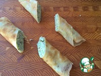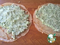 Намазываем рыбный мусс на блинчики, оставляя ненамазанный край с одной стороны - чтобы начинка не вылезла наружу, когда мы его закатаем |