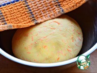 Замесить тесто. Тесто получается довольно плотным, но мягким, не крутым. Выложить его в чашу, смазанную растительным маслом, затянуть пищевой пленкой и поставить для подъема в тепло на 50-60 минут. |