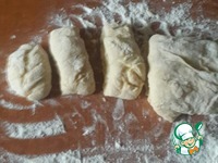 Когда тесто будет "созревшим", выкладываем на стол и разделяем его на 10-12 частей. |