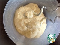 Месить еще в течение 3 минут. Тесто будет липким, но должно легко соскребаться со стенок чаши. Миксер убрать и руками сформировать шар. |