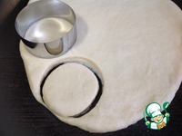 Используя круглый резак диаметром 10 см, вырезать пончики. |