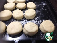 На посыпанной мукой (или смазанной растительным маслом) поверхности раскатать тесто толщиной около 1-1,3 см. |