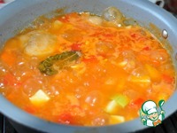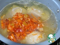 Кладём овощи в суп, доводим до кипения и варим 15 минут. |
