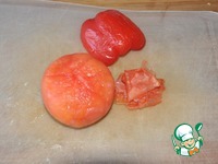 Ошпариваем помидор кипятком, снимаем кожицу. |