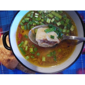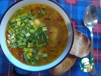 Разливаем наш супчик по тарелкам и подаем, присыпав зеленью. |
