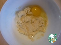 Добавляем в манку яйцо. Солим. Хорошо вымешиваем. |