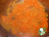 Мелко нарезанный лук припустить в масле. Я делаю это прямо в кастрюльке, в которой буду готовить суп. Добавить морковь и тушить 2-3 минуты. |