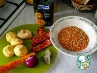 Лук нарезаем полукольцами, морковь трем на терке, засыпаем все в кастрюлю! Добавляем специи и варим все это 15-20 минут. |