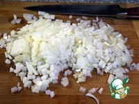 В сковороде распустить топленое масло, пассеровать лук до прозрачности. В конце немного посолить. Добавить готовый рис, перемешать, прогреть вместе пару минут, отставить, чтобы смесь остыла. |