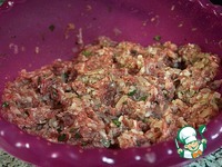 Смешать фарш и кинзу, посолить, поперчить, перемешать. |