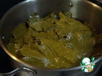 Сверху накрыть оставшимися листьями. Влить сухое вино – так, чтобы оно почти покрывало долму. |