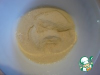 В манку добавляем 1 столовую ложку воды. Перемешиваем и оставляем на 5 минут для набухания. |
