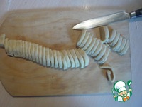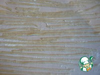 Тесто скатываем рулетом и нарезаем на тоненькие полоски. |