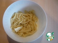 Готовую лапшу достаем, добавляем сливочное масло и перемешиваем. |