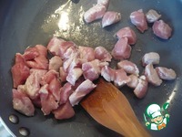На сковороде (лучше использовать толстостенную кастрюлю) разогреваем растительное масло и обжариваем мясо до золотистой корочки. |