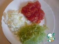 Лук помидоры режем кубиком. Редьку трем на терке (желательно для корейской моркови). |