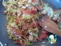 К мясу добавляем овощи и наши приправы. Кориандр и кумин перед этим перетираем в ступке. Солим и продолжаем обжаривать 15 мин. |