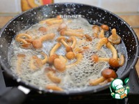 Опята выложить в сковороду, смазав ее маслом и выпарить воду. |