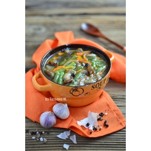 Описание: Очень ароматный, постный, полезный супчик со стручковой фасолью, гречей и опятами. Дополнительный аромат от душистого перца и чеснока, быстрое приготовление супа позволит вам накормить вкусным обедом неожиданных гостей. Суп вкусен как в горячем, так и в остывшем виде!