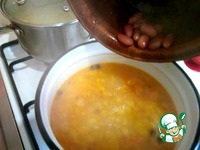 Добавляем в кастрюлю фасоль, доводим до кипения. |
