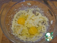 Размягченное масло, яйца, сахарный песок смешать в однородный крем. |