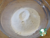 Смешать соль, разрыхлитель и муку. |