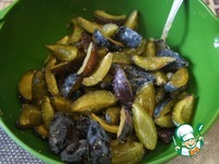 В это время сливы помыть, удалить косточки, разрезать на 4 части и смешать с сахарным песком и 1 ч. л. ванильного сахара. |