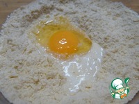Для коржа растереть масло с мукой, смешать с сахаром, |