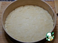 Раскатать тесто в круг, переложить в смазанную маслом форму диаметром 24–26 см, распределяя слоем толщиной 6 мм. Наколоть. Выпекать при 180 °С 20 мин. Остудить, не вынимая из формы. |