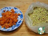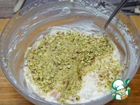 Фисташки (кроме 12 штук для декора) измельчить. Желатин замочить в 2 ст. л. воды. |