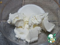 Все очень тщательно перемешать. Желатин прогреть до растворения на водяной бане, остудить до комнатной температуры. Ввести в сырную массу и быстро взбить вилкой. |