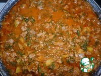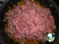 А теперь добавляем фарш и продолжаем жарить почти до его готовности. |
