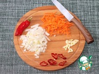 2. Морковь, лук, чеснок, перец чили очистить и порезать. |