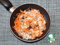 4. На чесночном масле обжариваем репчатый лук до прозрачности. Добавляем морковь и пассеруем до готовности. |