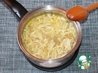 1. Сварить бульон из ребрышек. Затем ребрышки вынимаем из супа и делим на порционные кусочки. |
