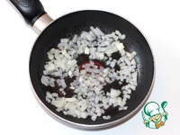2. Приготовим заправку. Репчатый лук очистить, порезать кубиками и обжарить на растительном масле до прозрачности с порезанным слайсами чесноком. |
